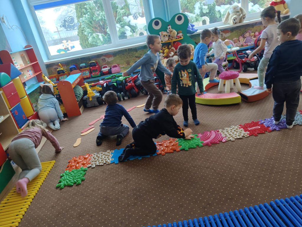 Ścieżka sensoryczna pełna różnych faktur pobudzała zmysły, rozwijała równowagę i sprawiła przedszkolakom mnóstwo radości 💚
