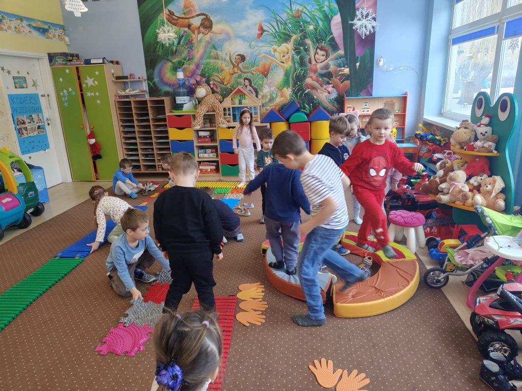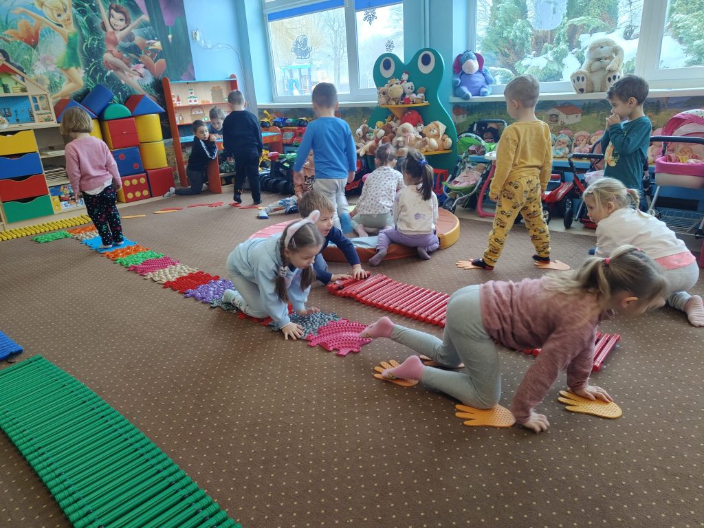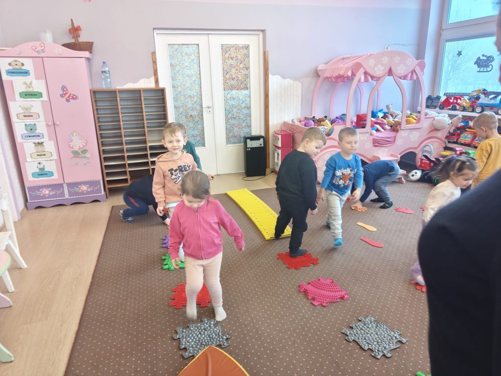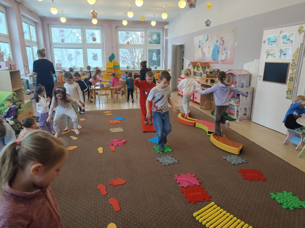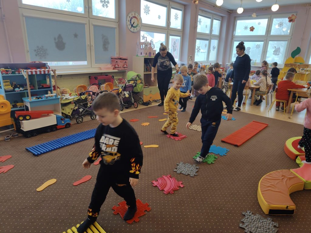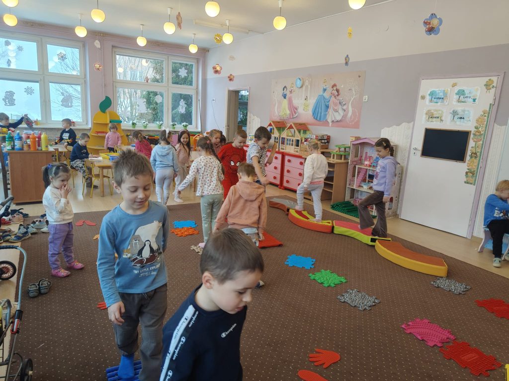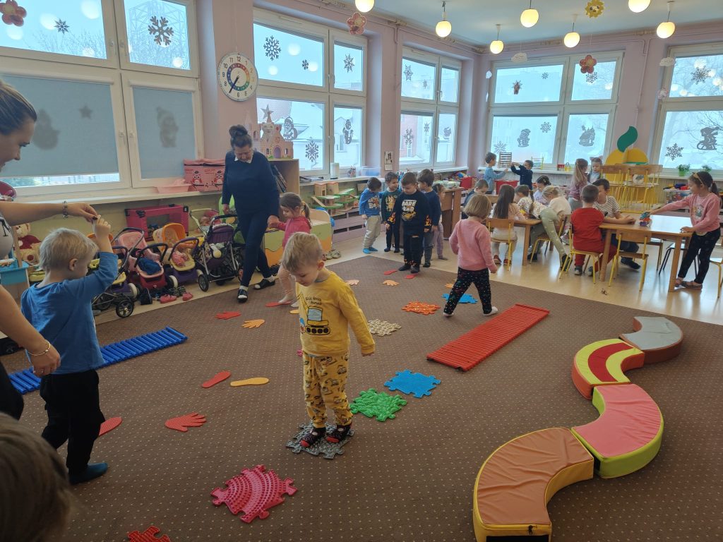 Dziś w Przedszkolu Jarzębinka dzieci zdjęły kapcie i odkrywały świat bosymi stopami!
